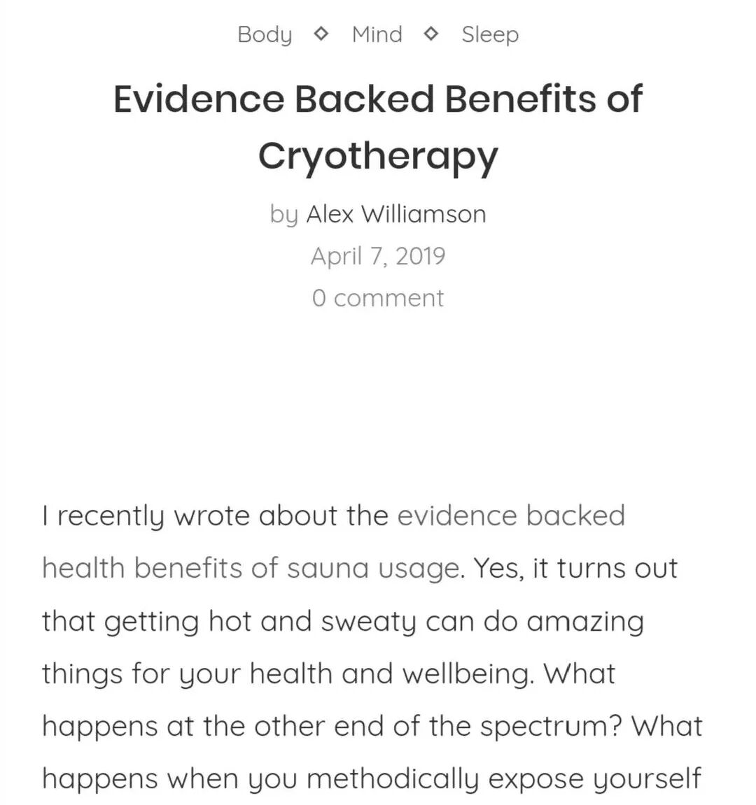 由此可见,超低温冷疗设备(疗法)已得到科学与应用的证实,其安全性与疗效是可靠的,且该设备不仅适用于专业运动员,对于广大健康爱好者也能带来许多益处。