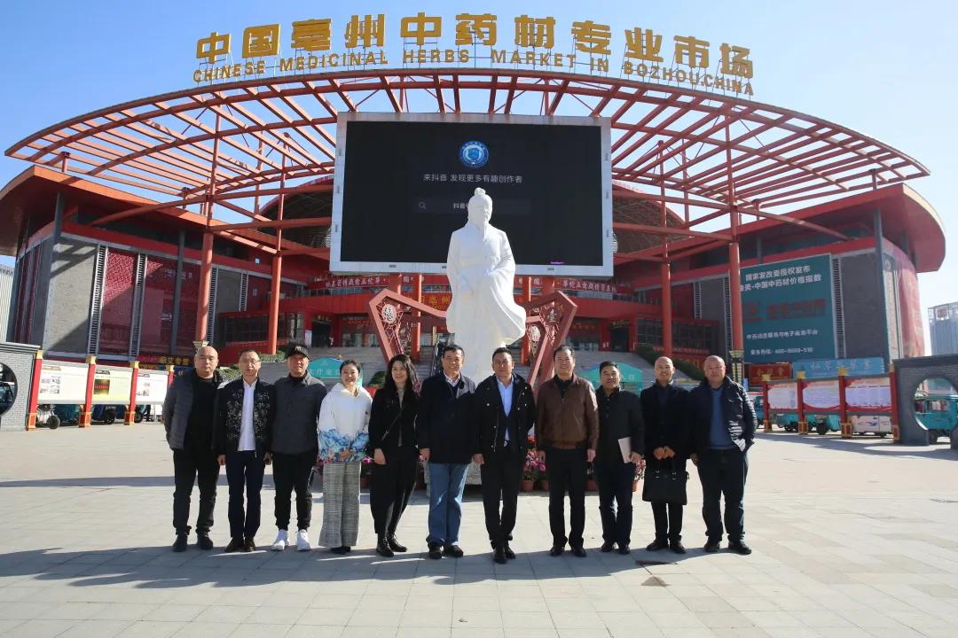 李玮董事长一行对全球规模最大的中药材专业市场、集散中心和价格形成中心——亳州中药材交易中心进行参观。他对如此规模、专业的交易中心赞叹不已,并表示期待今后能与亳州中药材交易中心开展更多交流,借鉴优秀经验与先进模式,将海南一龄打造成中医药贸易基地。