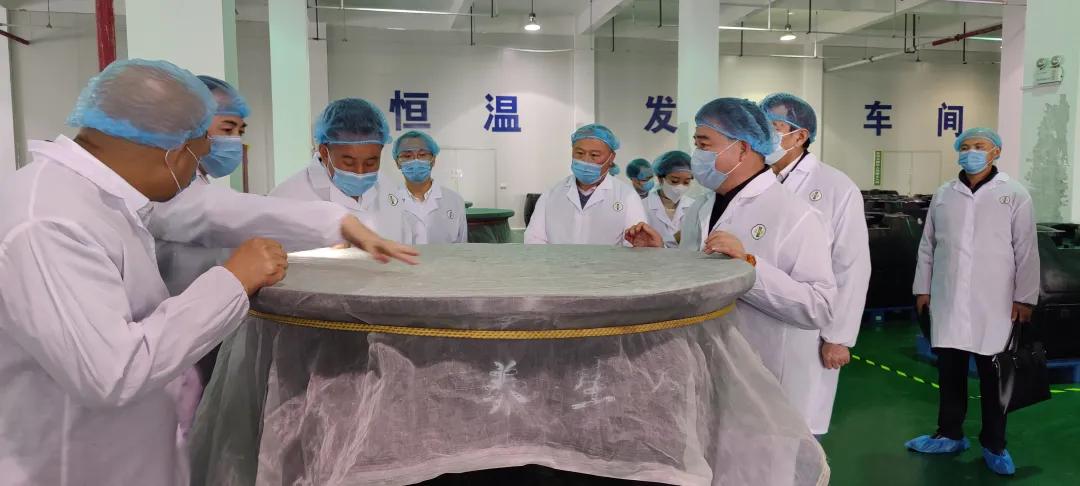 李玮董事长一行参观生产车间区域,对生产安全、口感、药材进行专业交流。