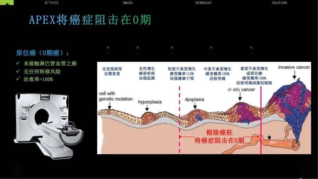 陶华博士表示,作为一款会思考的人工智能CT,Apex CT成像不受患者身材影响,无论任何体型的患者,都能实现无限制高清头颈心联合体部大动脉扫描,对脑动脉瘤、颈动脉粥样斑块、冠状动脉粥样斑块、肺动脉栓塞、脑动静脉畸形等疾病诊断具有重要意义。在肿瘤极早筛查方面,Apex CT也具有独特的优势。胰腺癌在最容易治愈的早期阶段很少被发现确诊,通常在确诊前就已悄无声息地扩散到其他器官,因此胰腺癌又被称为“癌中之王”。Apex CT可以实现胸腹部0.625mm高清薄层成像,配合其超高端能谱成像功能,可以提高胰腺癌乃至实质性脏器极小肿瘤的检出率,肿瘤极早筛有望提高早期患者占比,更早实现治疗,从而提高患者五年生存率。不仅如此,Apex CT辐射剂量低,做一次肺部CT,仅有0.17mSv,是普通CT的三十分之一,大幅度减少对患者的辐射损伤。