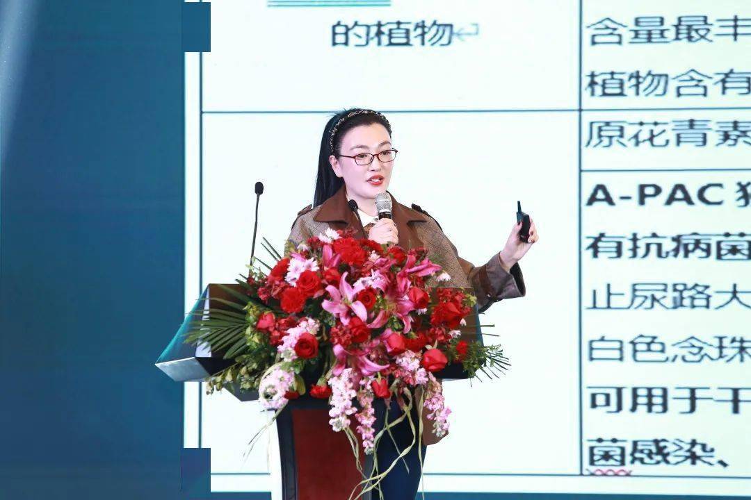 一龄自然免疫医学中心顾问、北京大学免疫医学研究生Upwell 实验室研究员贾蕾女士带来新概念产品—— Azmasol。她介绍到,“Azmasol主要成分为蔓越莓提取物A型原花青素,具有抗病菌黏附、抗氧化、无副作用及耐药性、部分感染预防及干预、孕期哺乳期可安心食用的特点,适用于干预和预防生殖系统炎症、尿路感染及复发性尿路感染,抗衰等症状。”