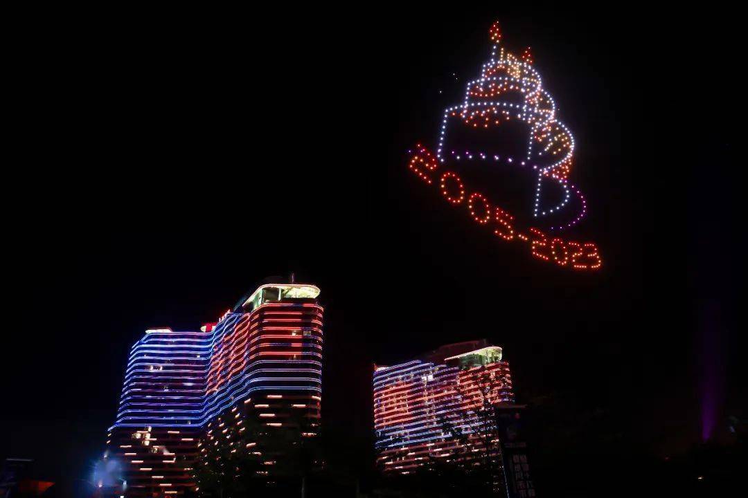 在晟保龄大健康生命养护中心启航之夜,以空为幕,以光点彩。500架无人机腾空而起,用艺术、时尚、科技相结合的创意,点亮博鳌夜空,献礼启航之夜。