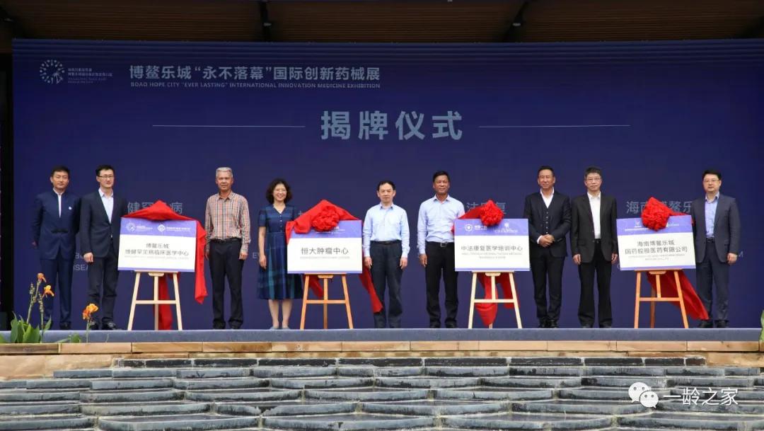 在开幕式上,博鳌乐城真实世界数据研究创新中心、博鳌乐城国际医学交流中心、博鳌乐城先进医学科技转化中心、中法康复医学培训中心、海南博鳌乐城国药控股医药有限公司等十二大中心揭牌成立。海南省发改委主任符宣朝与海南一龄医疗产业发展有限公司董事长李玮共同为中法康复医学培训中心揭牌;海口海关副关长陈针与国药控股股份有限公司业务发展部部长吴彬共同为海南博鳌乐城国药控股医药有限公司揭牌。