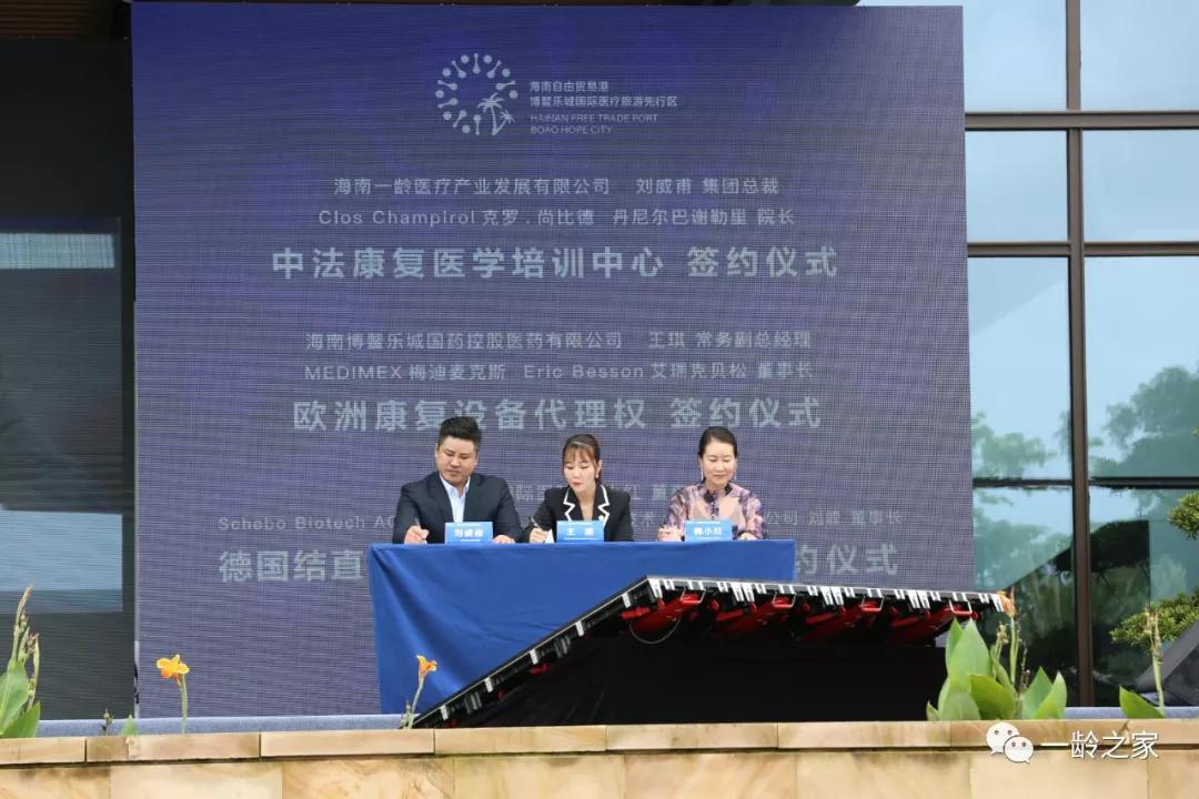 尽管受全球疫情影响,许多国际药械厂商的境外代表不能亲临现场参会,但丝毫没有影响他们对乐城这片热土的坚定看好和投资热情。开幕式上,境内境外克服时空的阻隔,通过视频连线完成了线上签约。海南一龄医疗产业发展有限公司执行总裁刘威甫与法国Clos Champirol 康复中心丹尼尔院长通过视频连线完成了中法康复医学培训中心的线上签约;海南博鳌乐城国药控股医药有限公司常务副总经理王琪与法国MEDIMEX公司艾瑞克贝松董事长通过视频连线完成了欧洲康复设备代理权的线上签约。