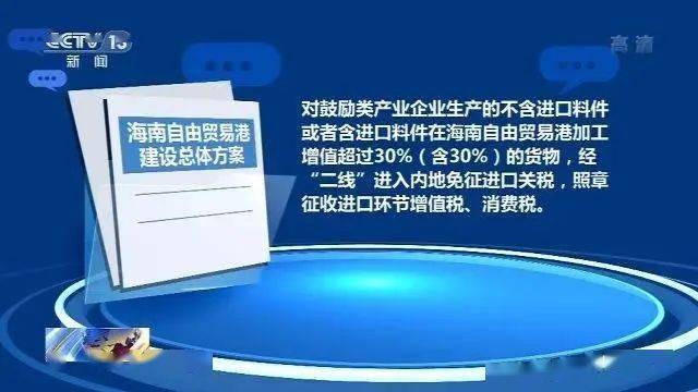 根据方案,“货物从海南自由贸易港进入内地,原则上按进口规定办理相关手续,照章征收关税和进口环节税。对鼓励类产业企业生产的不含进口料件或者含进口料件在海南自由贸易港加工增值超过30%(含30%)的货物,经“二线”进入内地免征进口关税,照章征收进口环节增值税、消费税”。
